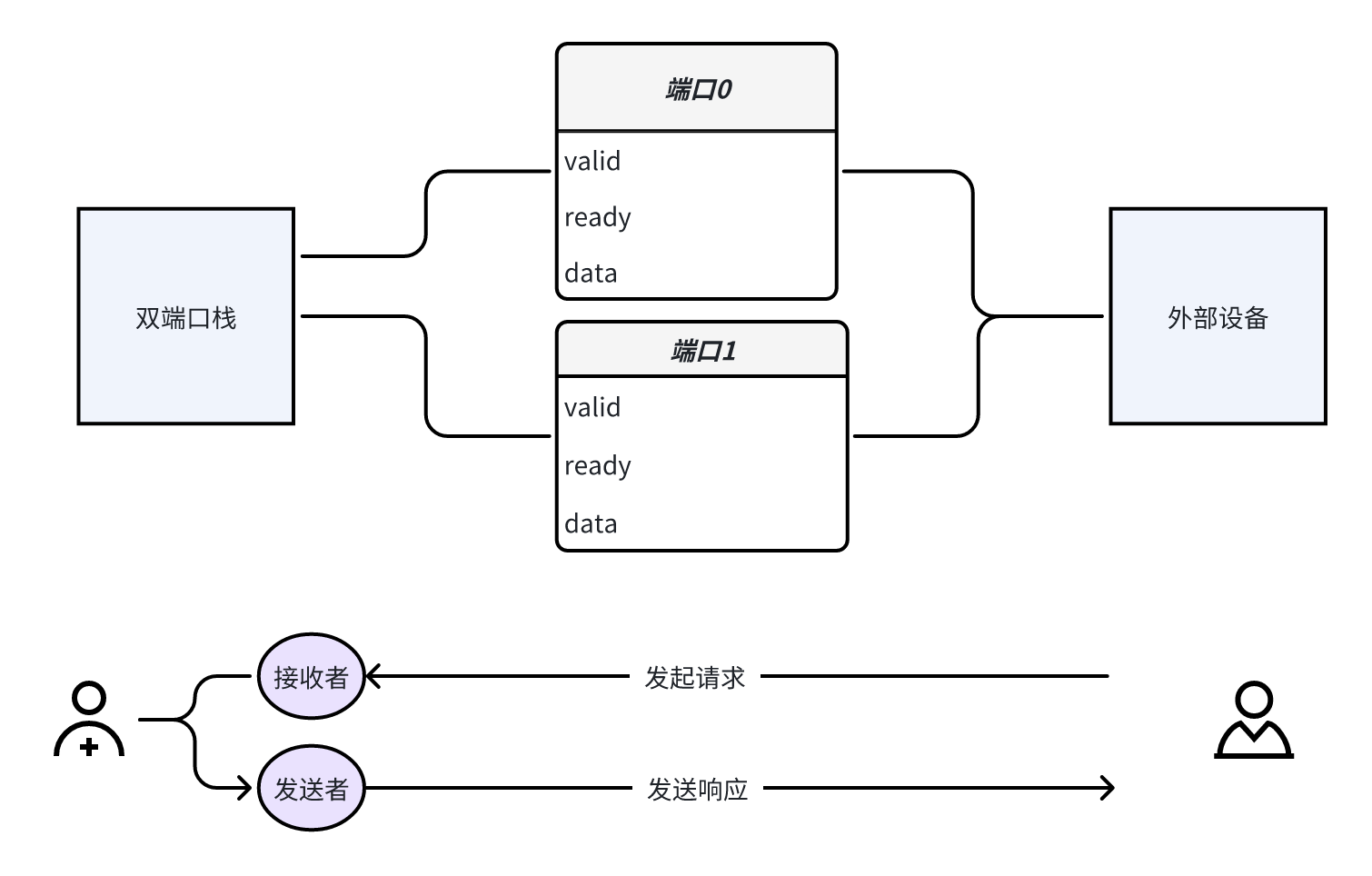 本讲的核心目标是学习和演示在只使用 picker 的前提下,如何处理并发接口的验证,这是芯片验证中常见且重要的挑战。我们将以双端口栈为例,该设计允许两个端口同时进行独立的读写操作。